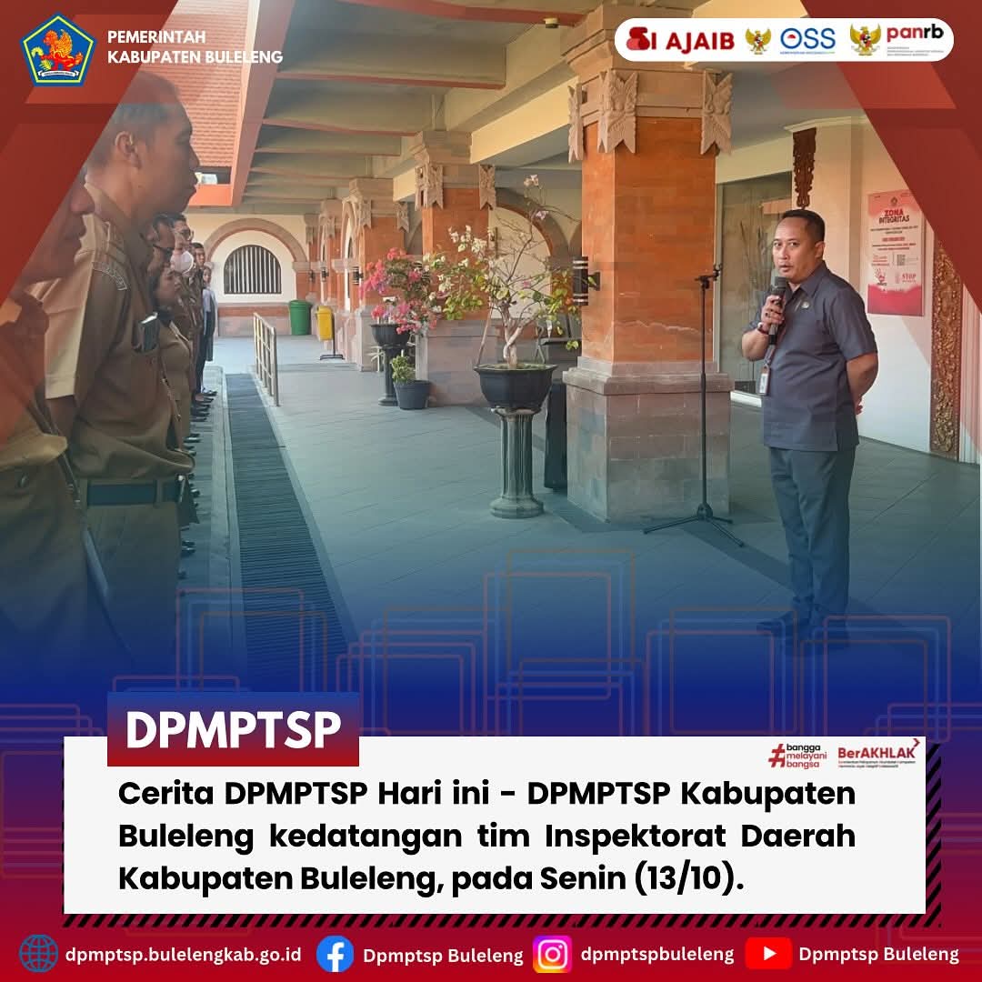 Senin pagi yang berbeda dari hari sebelumnya, kali ini DPMPTSP Kabupaten Buleleng kedatangan tim Inspektorat Daerah Kabupaten Buleleng, pada Senin (13/10).