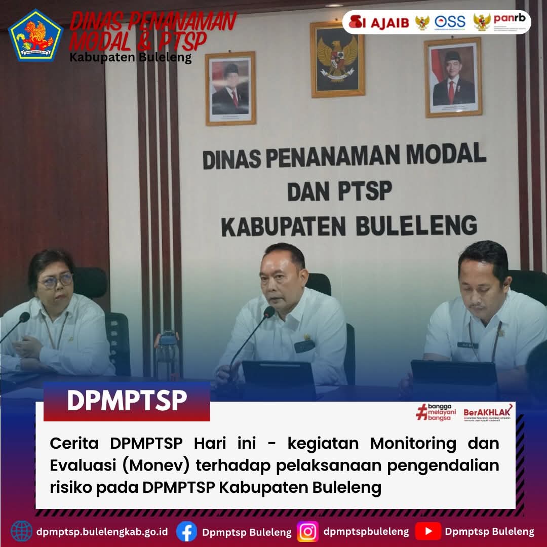 Adapun rekomendasi yang diberikan dari Tim Inspektorat adalah agar DPMPTSP Kabupaten Buleleng terus meningkatkan kualitas monitoring risiko secara berkala, memperkuat koordinasi internal, serta memastikan seluruh risiko dan tindak pengendaliannya terdokumentasi dengan baik sebagai bagian dari penguatan Sistem Pengendalian Intern Pemerintah (SPIP).