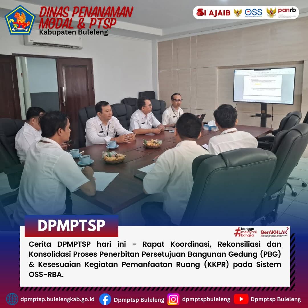 Adapun rapat ini terselenggara sebagai tindak lanjut atas laporan hasil pemeriksaan BPK RI Tahun 2025 dan Inspektorat Daerah Kabupaten Buleleng pada Triwulan III tahun 2025 serta pemecahan permasalahan yang dihadapi pada proses penerbitan perizinan dasar PBG dan KKPR, sesuai dengan penerapan aturan PP No. 28 Tahun 2025 guna menyamakan persepsi dan informasi yang akan disampaikan ke masyarakat terkait langkah – langkah pelayanan yang diberikan (WA MPP, Layanan Tata Ruang, PBG).