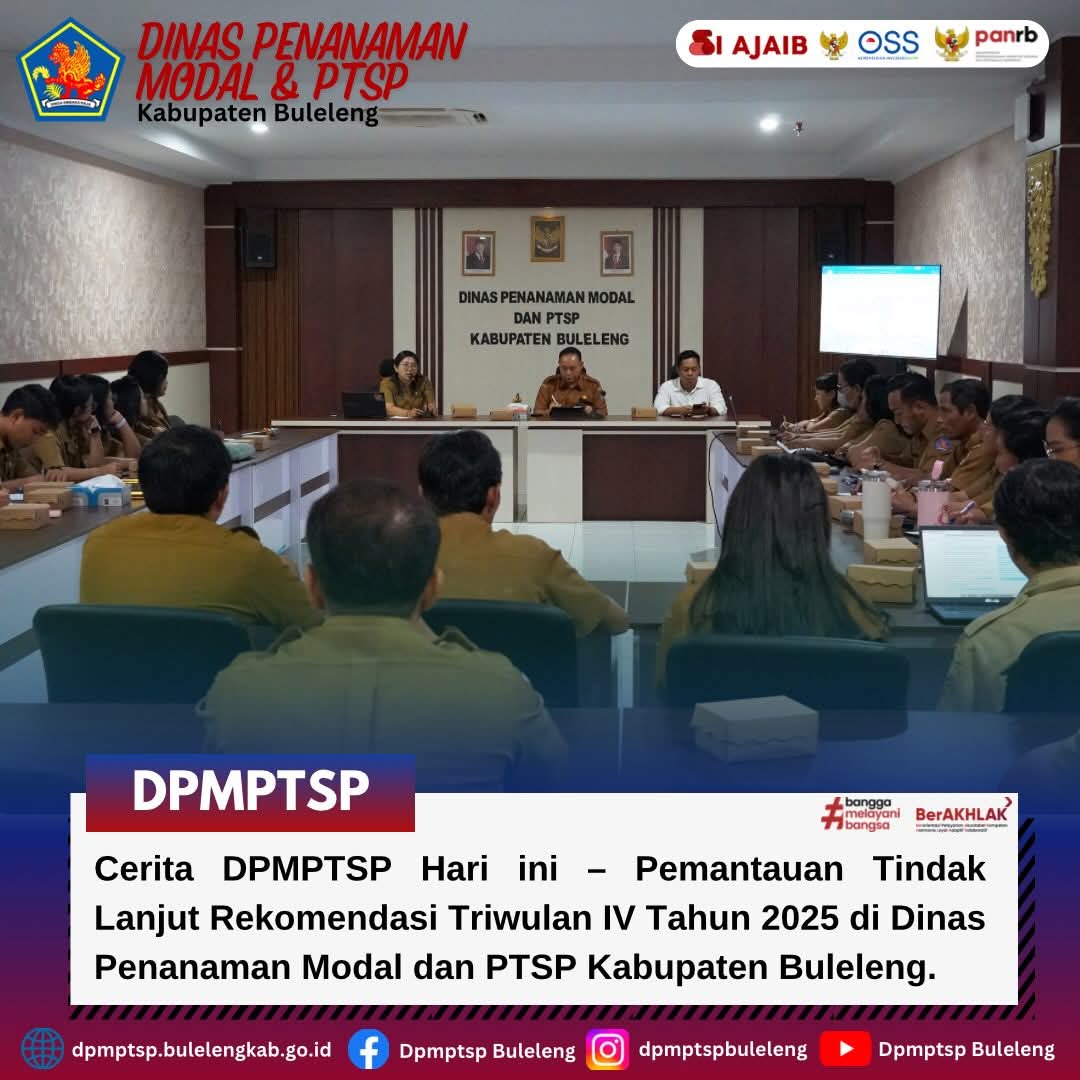 Terdapat masukan dari Kanit Tipikor Polres Buleleng selaku anggota tim pengawasan menyarankan agar Tim Kreatif dapat turut aktif mempublikasikan kegiatan penyelenggaraan perizinan di MPP Buleleng serta Inspektorat Daerah akan memfasilitasi Sistem Manajemen Anti Penyuapan (SMAP).